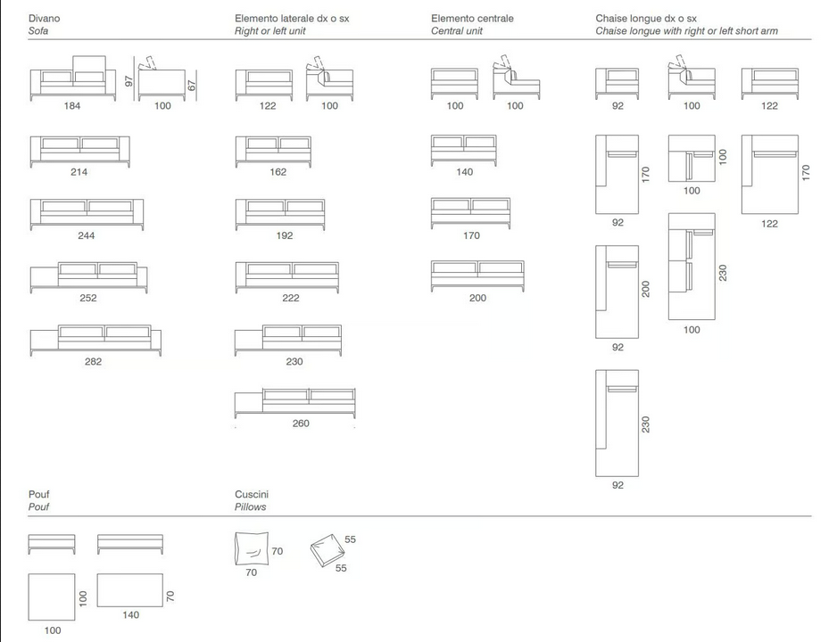 Секционный кожаный диван с шезлонгом доступен в различных размерах, чтобы соответствовать различным жилым пространствам. Эта гибкость обеспечивает его бесшовное вписывание в любую комнату, от компактных квартир до просторных домов. Каждый размер тщательно изготовлен, чтобы обеспечить оптимальный комфорт, соответствуя современным стандартам дизайна и функциональности.