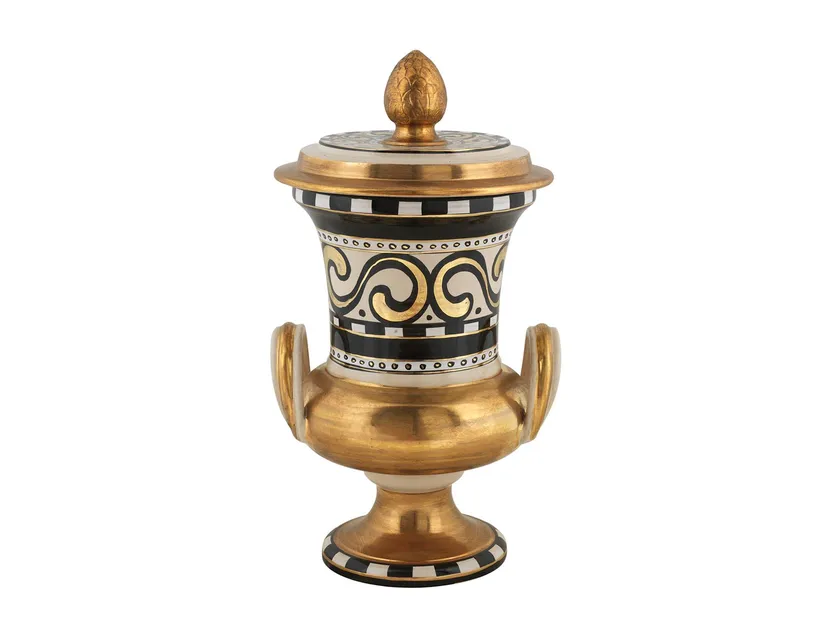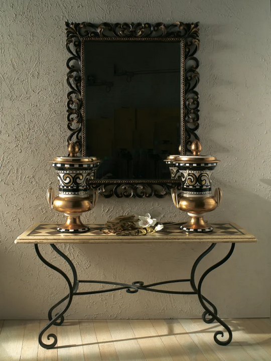 Ручная керамическая ваза Мореcко от L'ANTICA DERUTA является потрясающим центром внимания, который воплощает элегантность и искусство. Созданная с тщательным вниманием к деталям, эта ваза демонстрирует роскошное золотое покрытие в сочетании с изысканными ручными росписями. Идеально подходит для современных интерьеров, она служит прекрасным дополнением к любому стилю декора, поднимая эстетический уровень гостевых комнат, столовых или офисных пространств. Ее уникальные характеристики делают ее не только декоративным предметом, но также началом разговора, отражающего утонченность и вкус.