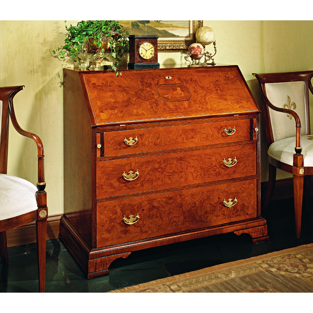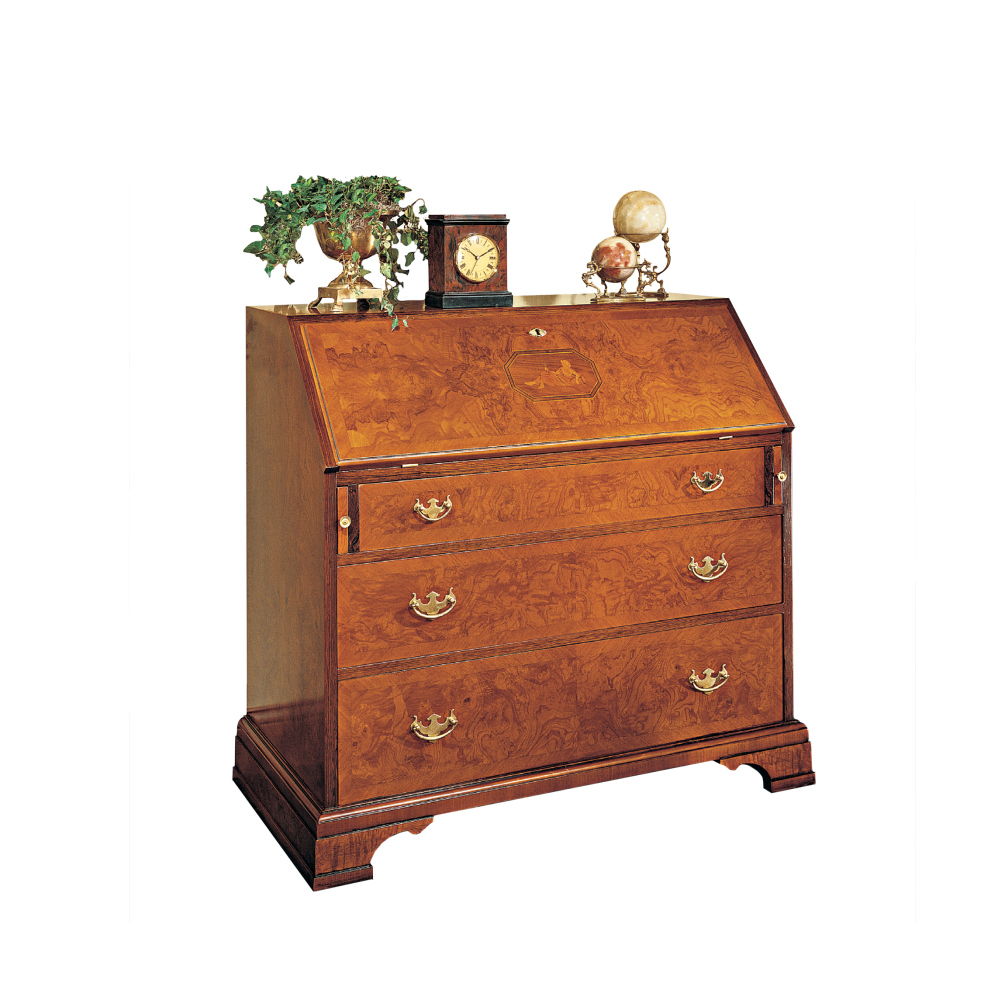 Секретер с 3 выдвижными ящиками и откидной дверцей на замке. Возможны другие варианты отделки.